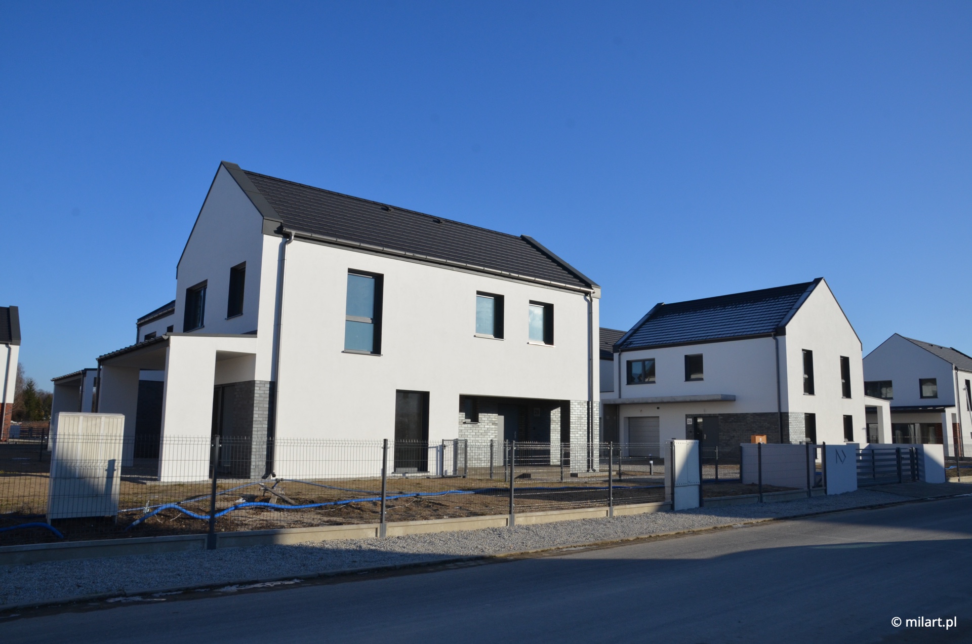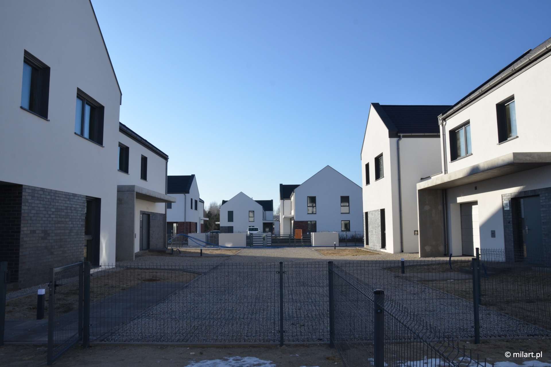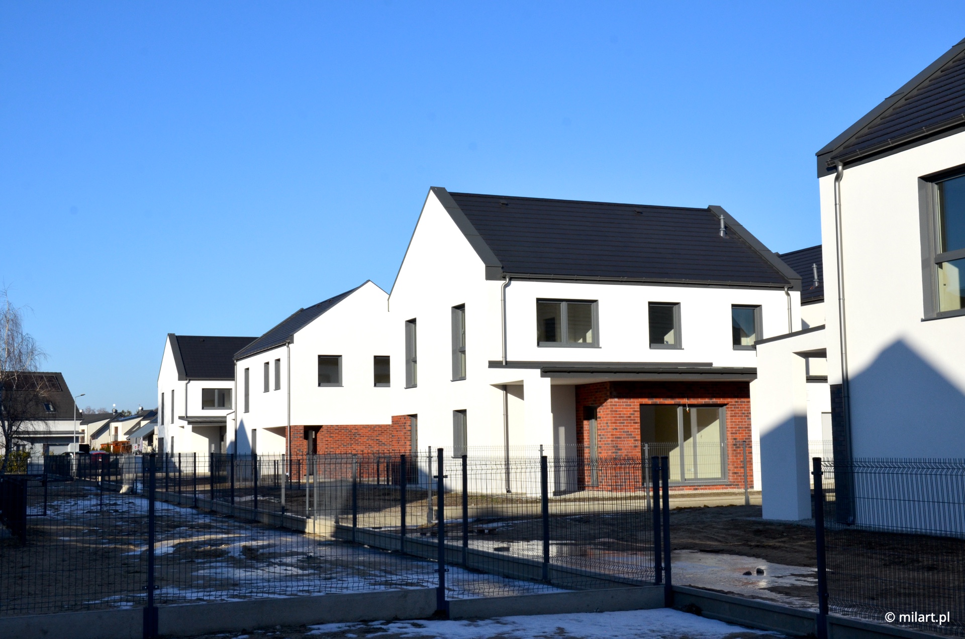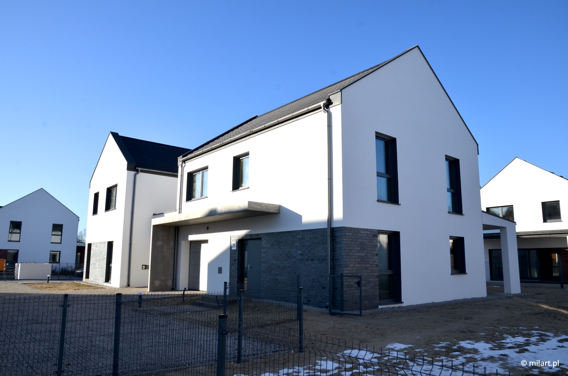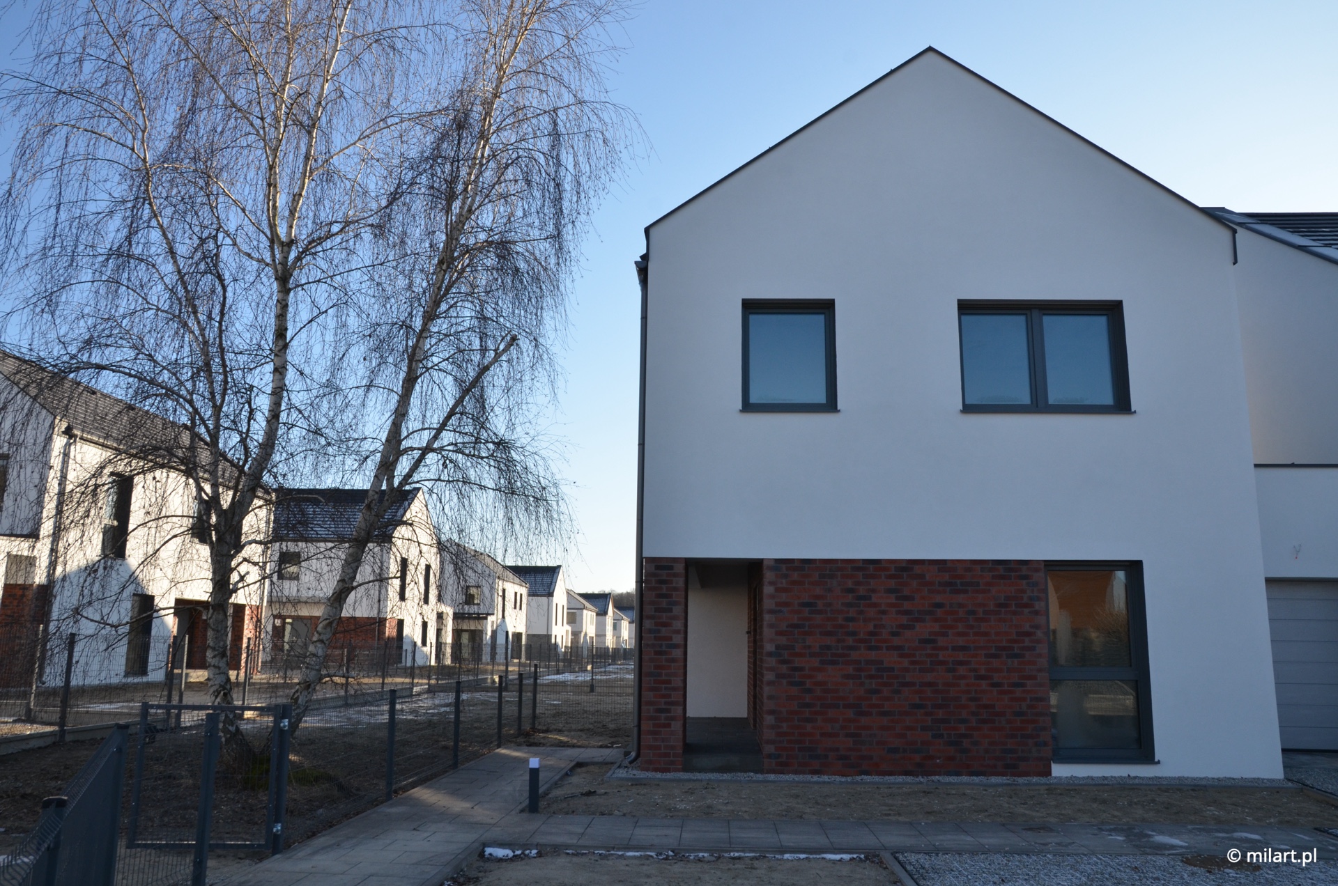 Solidne wykończenie. Na dachu umieściliśmy ceramiczną dachówkę, zaś elewację pokryliśmy klinkierem. Projektując całą infrastrukturę osiedla zwróciliśmy uwagę na intuicyjną komunikację między budynkami.