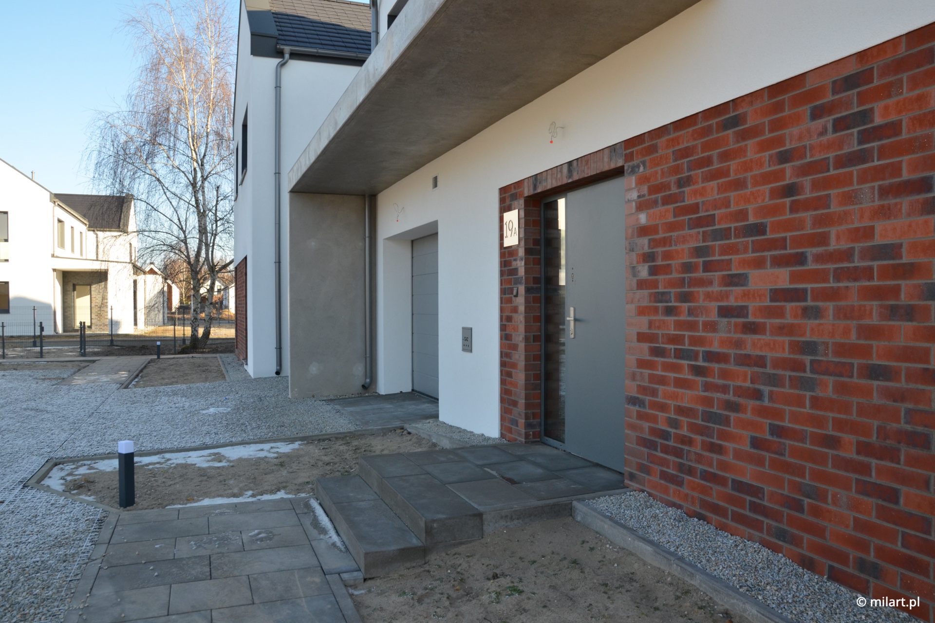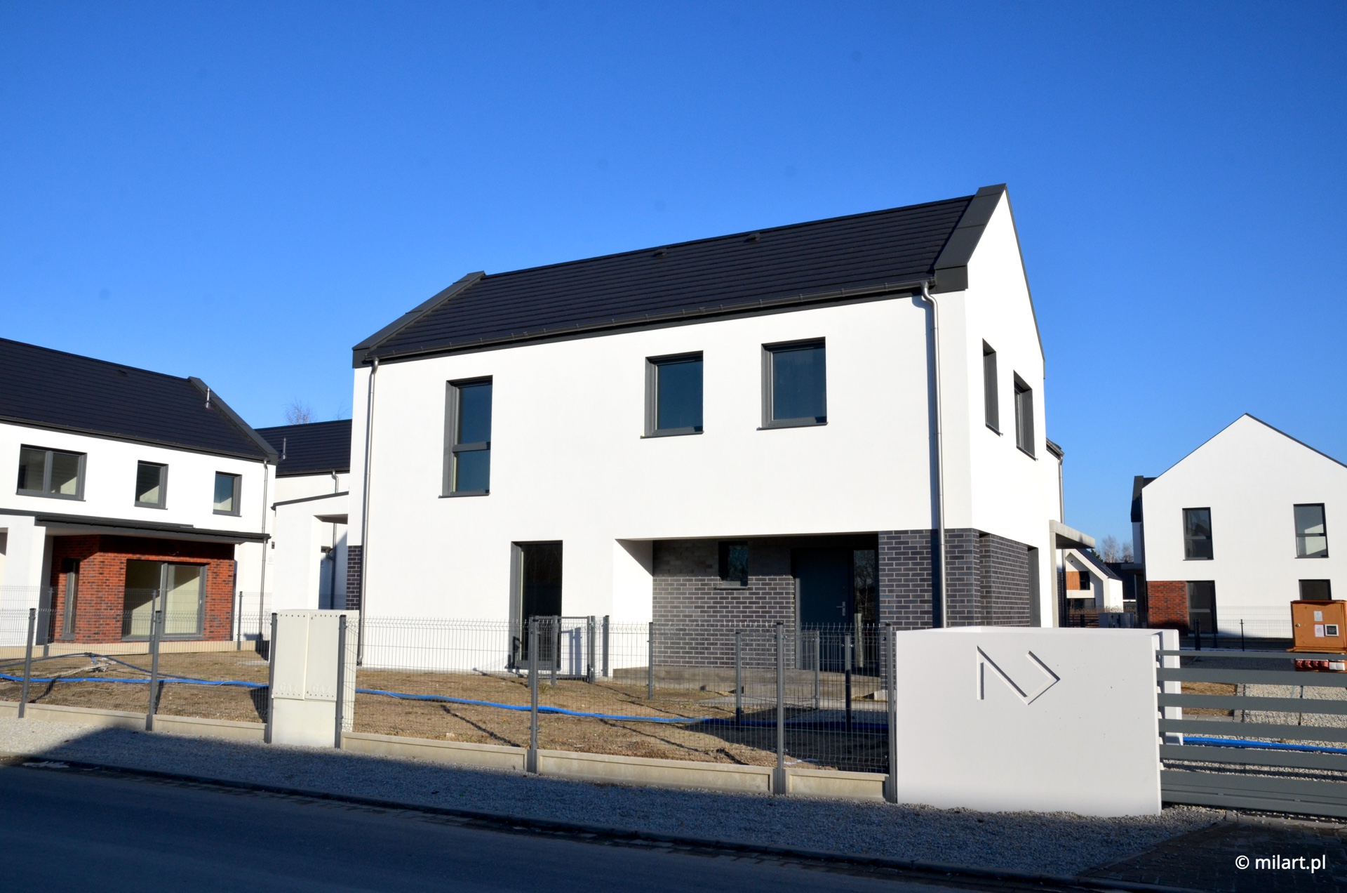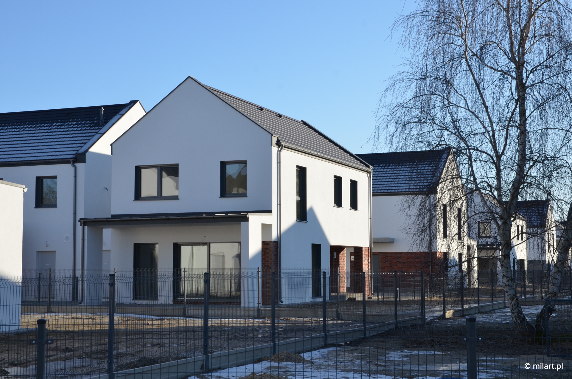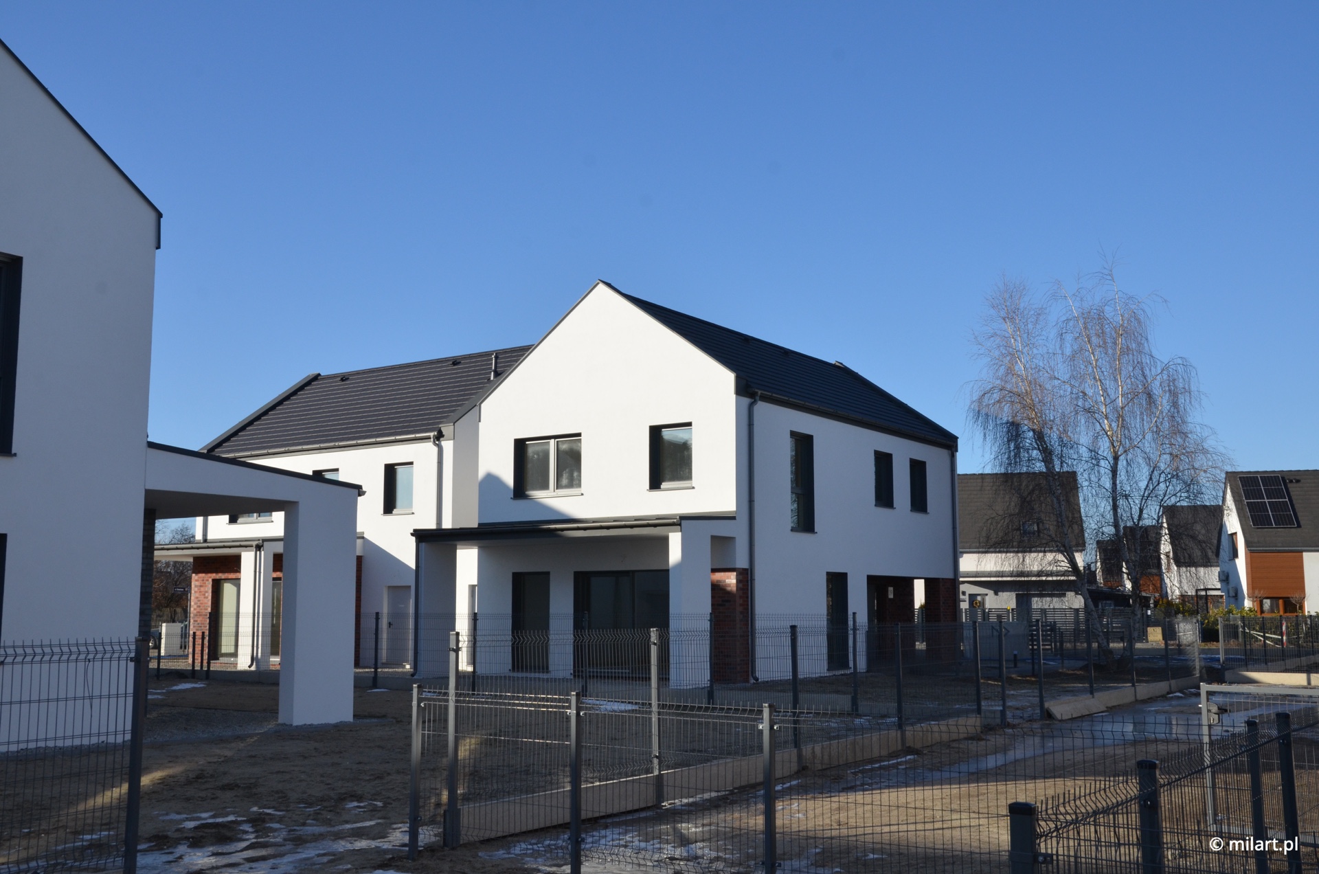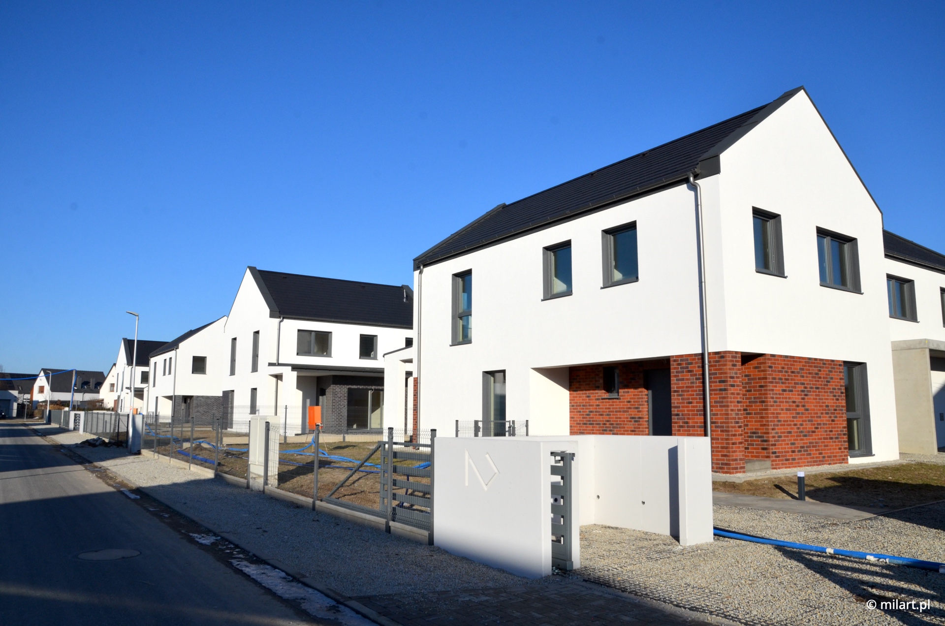 Solidne wykończenie. Na dachu umieściliśmy ceramiczną dachówkę, zaś elewację pokryliśmy klinkierem. Projektując całą infrastrukturę osiedla zwróciliśmy uwagę na intuicyjną komunikację między budynkami.