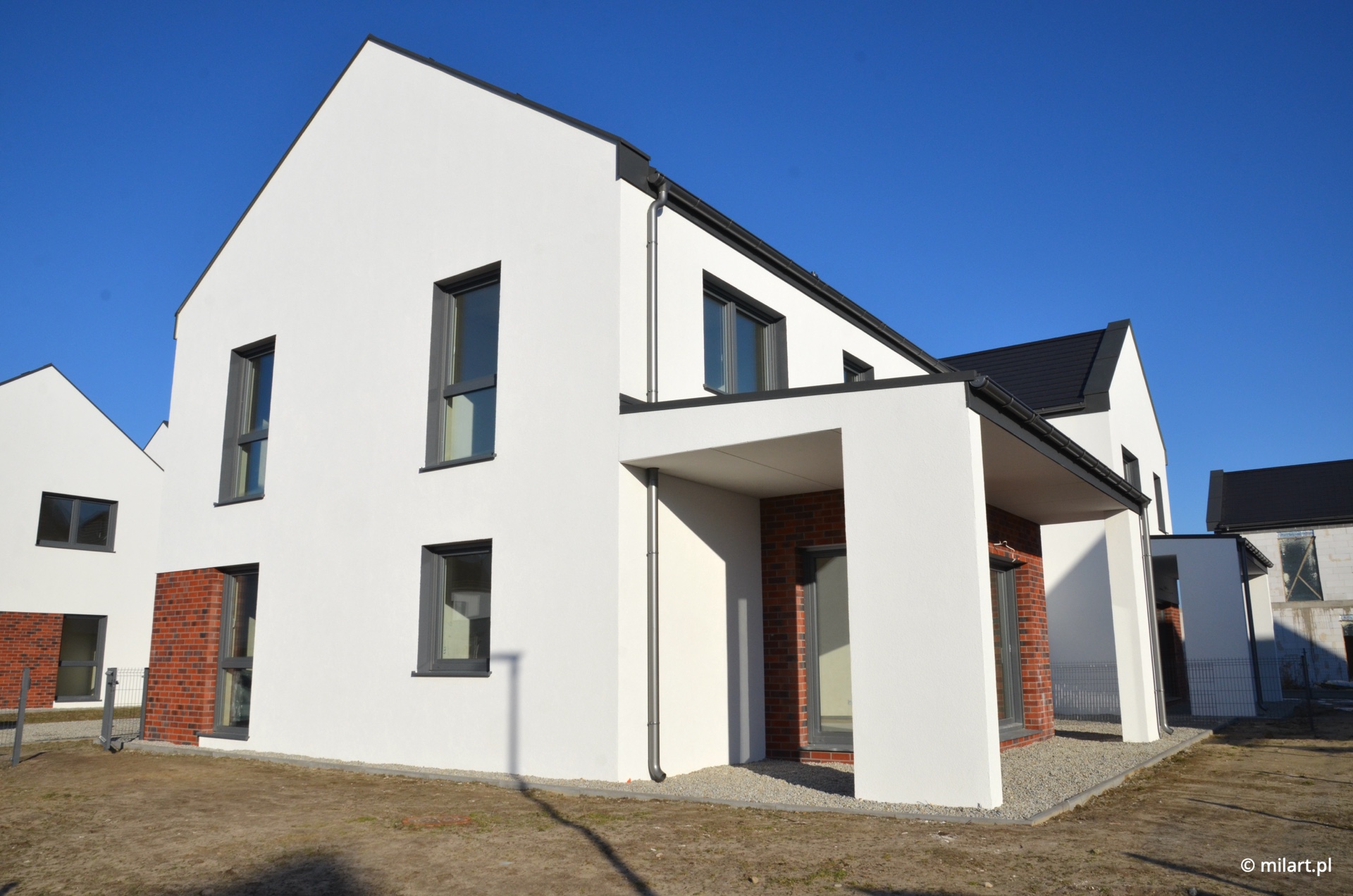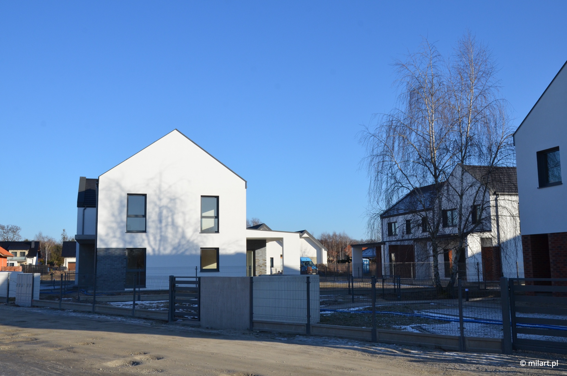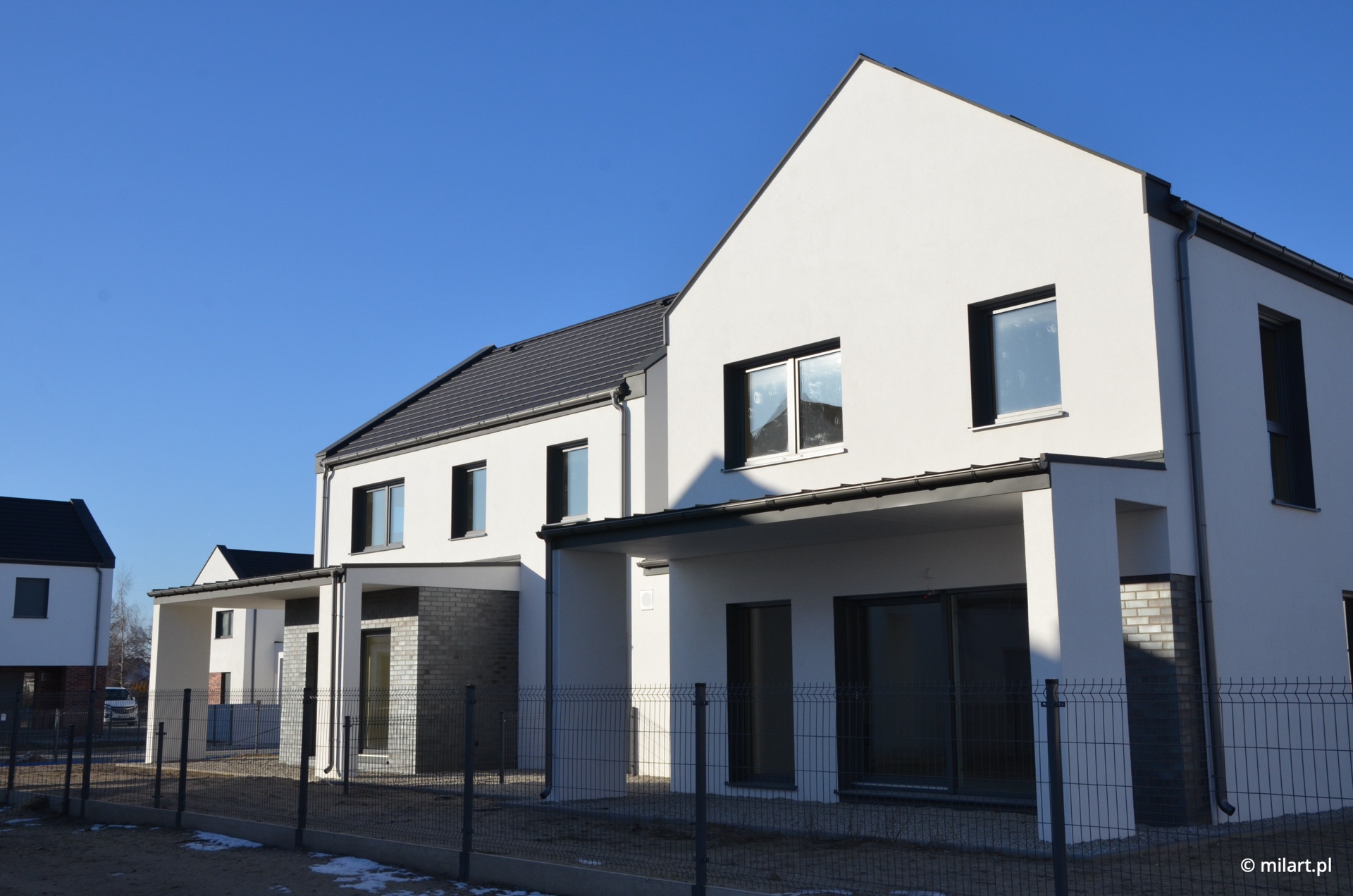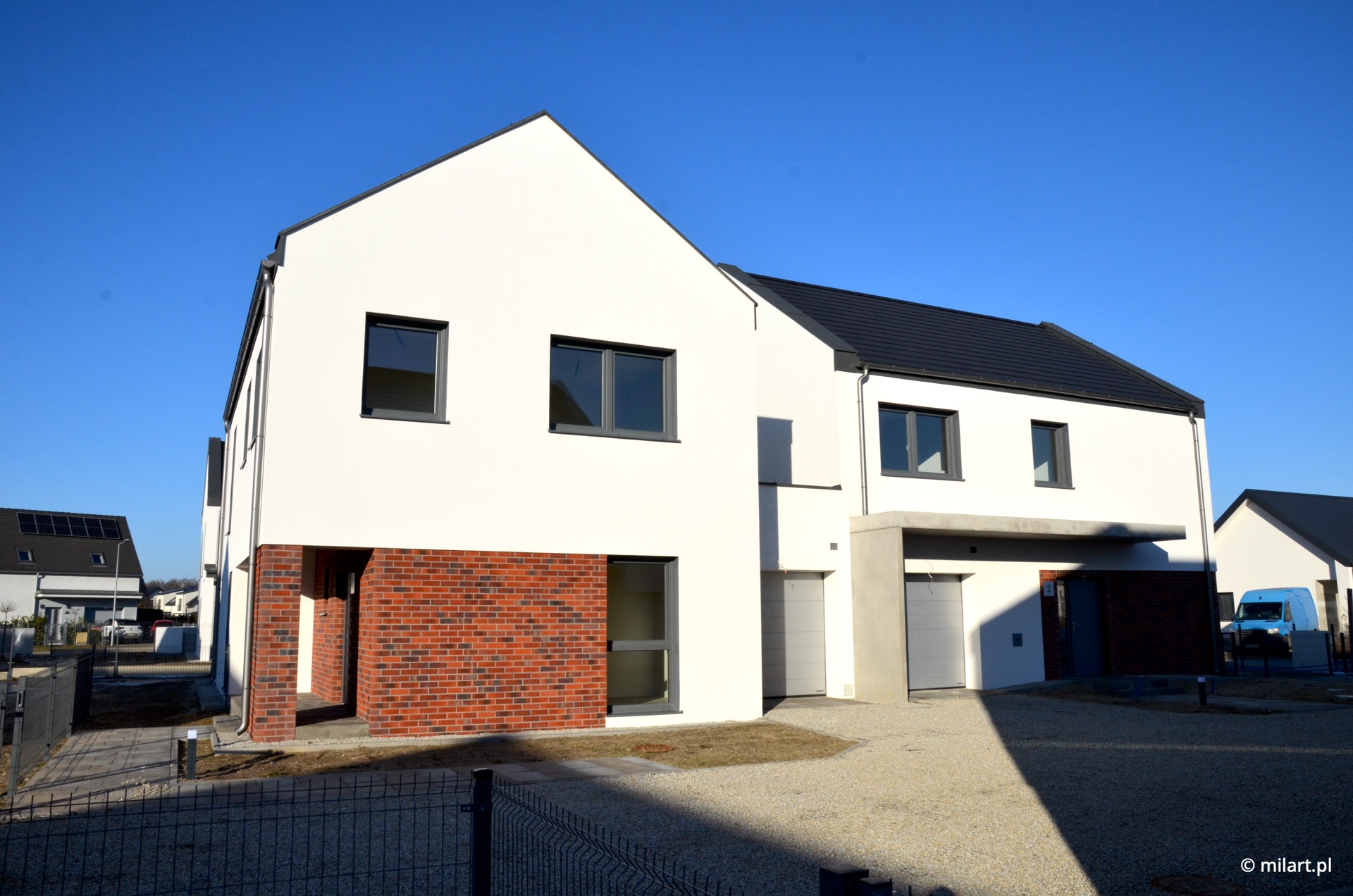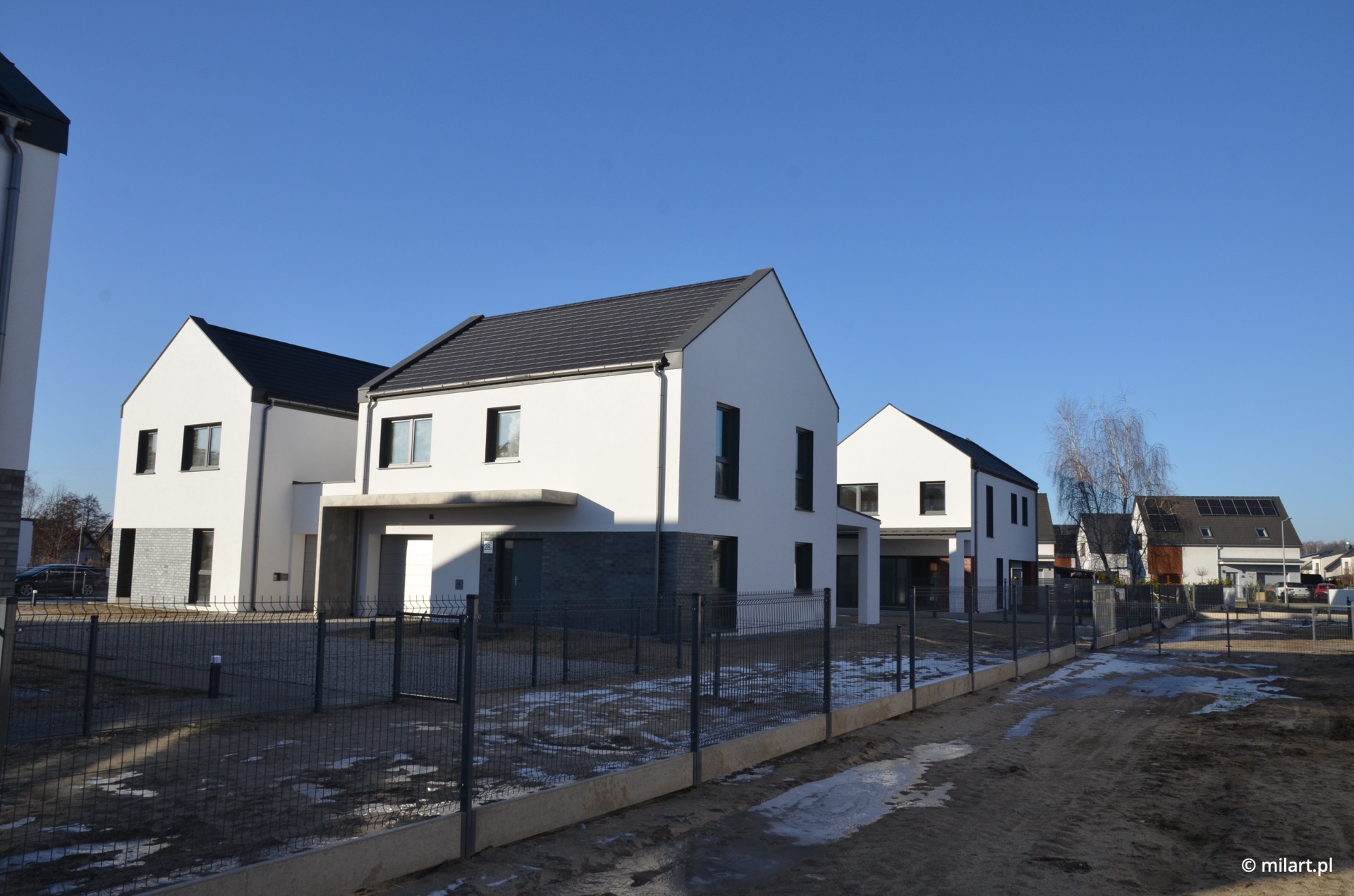 Solidne wykończenie. Na dachu umieściliśmy ceramiczną dachówkę, zaś elewację pokryliśmy klinkierem. Projektując całą infrastrukturę osiedla zwróciliśmy uwagę na intuicyjną komunikację między budynkami.